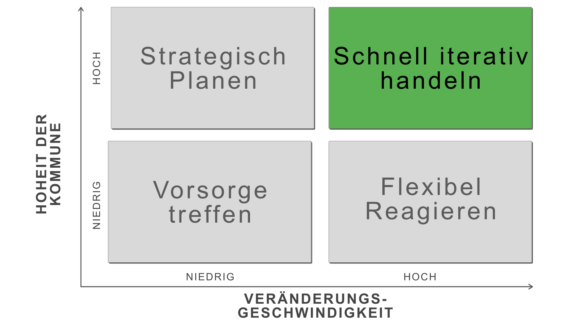 Der externe Anpassungsdruck ist enorm. Gesetze auf Bundes- und Landesebene sowie sich wandelnde gesellschaftliche Erwartungen (z.B. an Klimaschutz, Mobilität oder Zuwanderung) erfordern eine hohe Agilität. Eine Strategie kann daher nicht mehr statisch auf Jahre festgelegt werden, sondern erfordert kontinuierliche und schnelle Anpassungen an neue Realitäten.